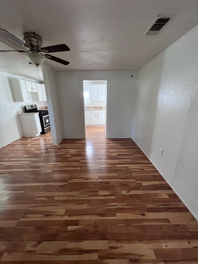 This 2 bed, 1 bath home features high ceilings, large bedrooms, long kitchen with lots of storage, gas range, large backyard, central A/C, and much more! Call us to schedule a showing 325-437-6029.