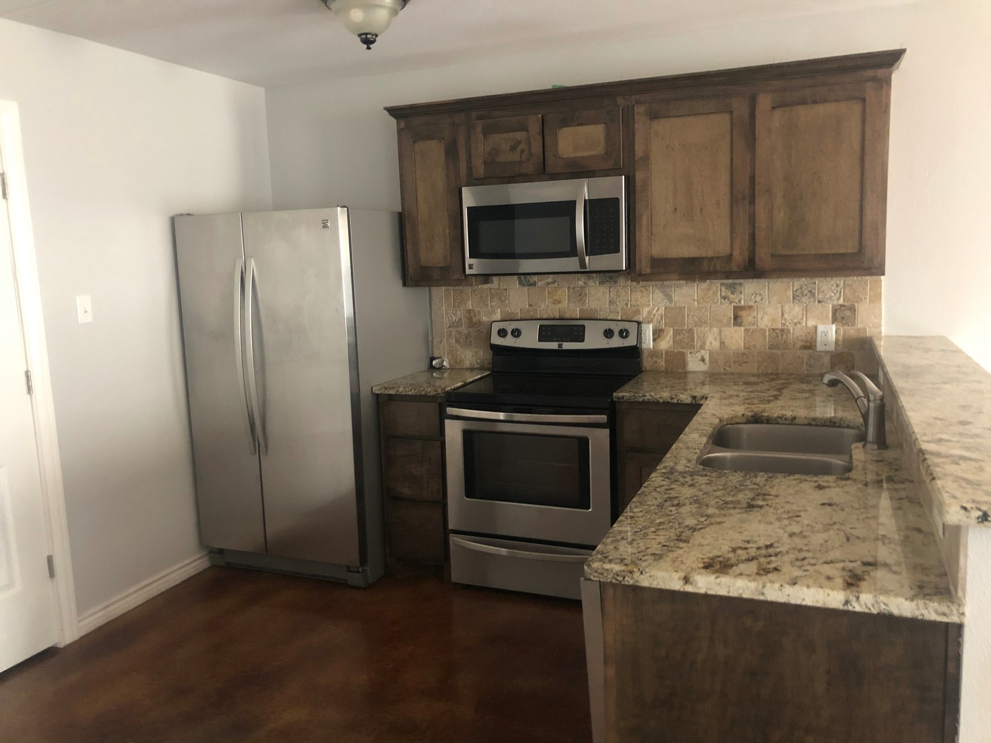Newer Construction! 3 bed, 2 bath, 1 carport home. All flooring is stained concrete throughout! All kitchen appliances included: range, fridge, microhood, dishwasher!