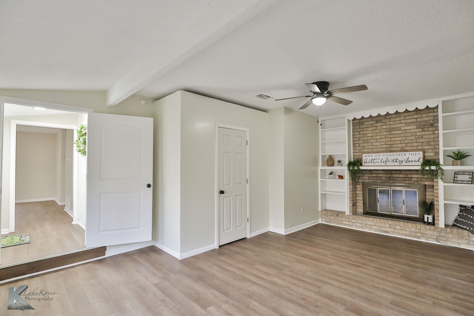 Set up a showing for the cutest rental in Abilene! Updated in 2023: new interior paint, new vinyl flooring, new lighting, new bathroom vanities and fixtures. This home is set up as a 3 bed, 1 living home but could easily serve as a2 bedroom with 2 living areas. One of those rooms has a beautiful fireplace flanked with bookshelves and a full closet, too. ALL APPLIANCES INCLUDED in this home, too. The laundry closet is located just outside the back door on the patio. Carport parking and central to everything in Abilene! Call our office to set up a showing for this darling home.