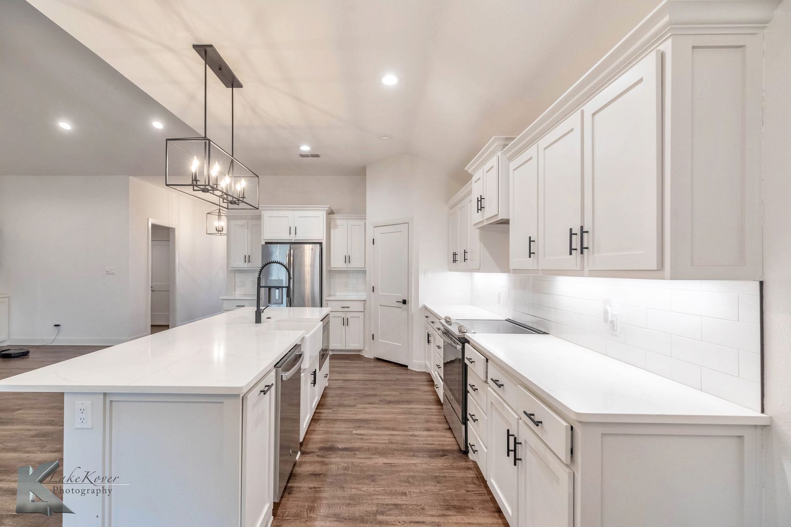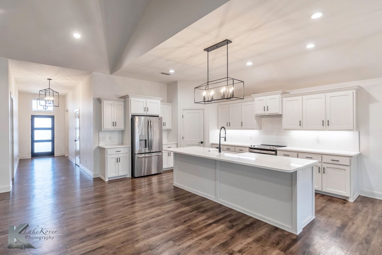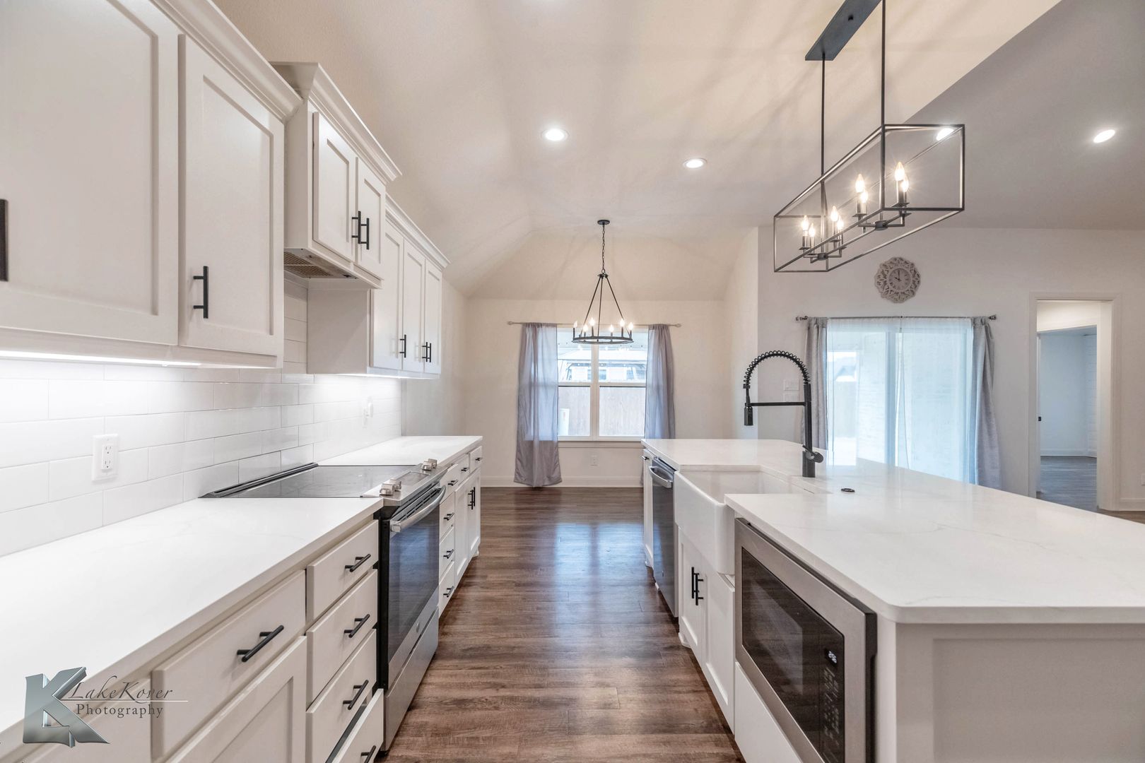 Fabulous newer construction home built in 2019 with 1900+SF. 3 bedrooms, 2 baths, and a 2 car garage on a corner lot. This rental has an open living, kitchen and dining area with granite counters and a breakfast bar separating the spaces. The laundry area connects to the master closet, then to the master bath and bedroom. Great floorplan design throughout.