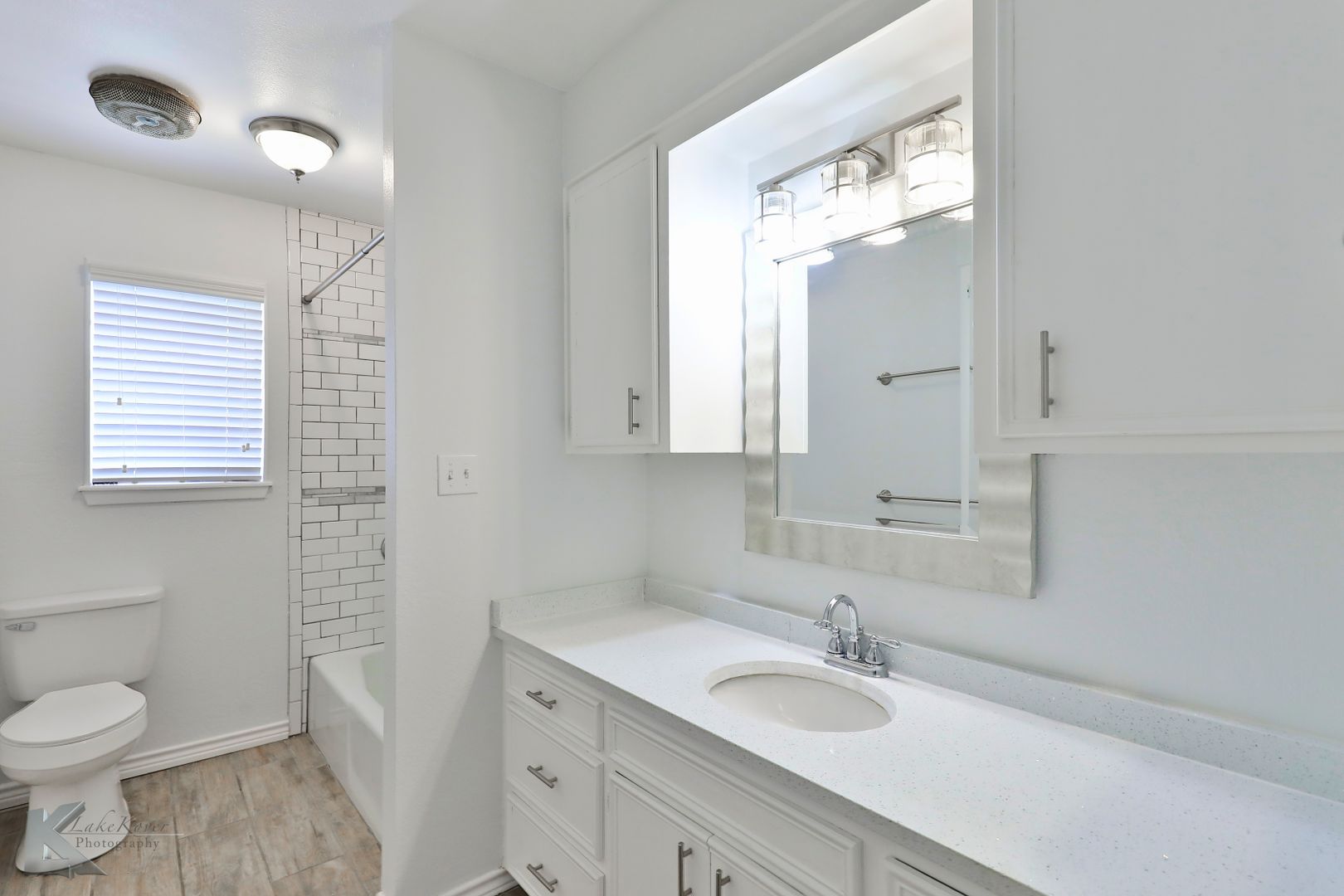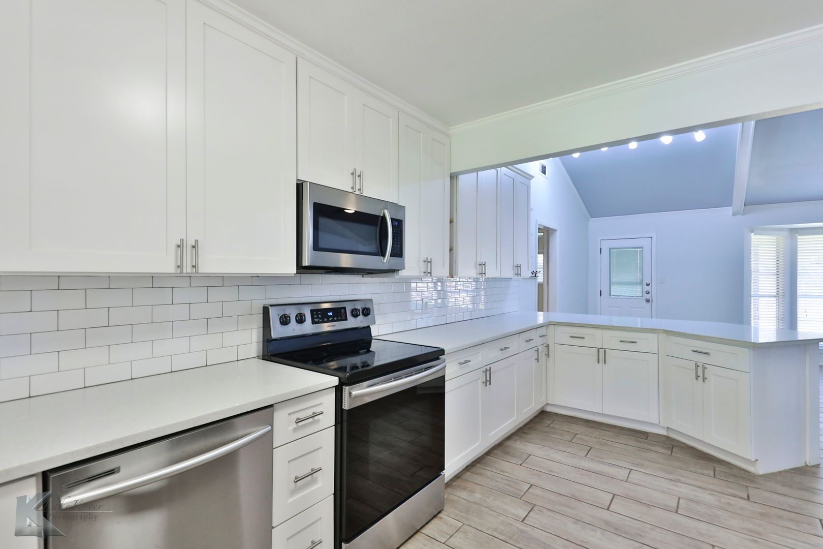 Complete renovation with 3 bedrooms, 2 baths , 2 car garage. Split floorplan with separate dining room and corner fireplace in living. All tile flooring throughout, NO CARPET! Classy kitchen with stone countertops and deep sink. Newer appliances, too. Good curb appeal and ready to rent!