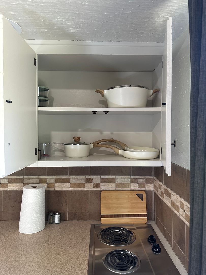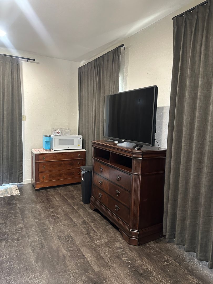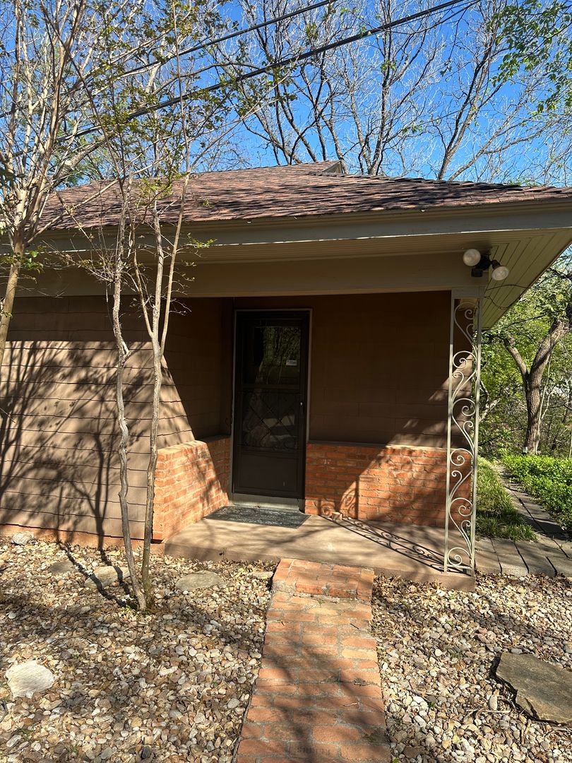 FULLY FURNISHED; ALL BILLS PAID! This cottage is the most charming home in town! ONE ROOM home; Your bed and sofa and dining table is all in the same room. A small kitchenette is provided for you. The kitchenette comes with a small dorm sized fridge, a 2 burner electric cooktop, a microwave, coffee pot, all the dishes, bowls, pots and pans, cups, plates & silverware you'll ever need! Central heating and air, full size bathroom with step in shower AND this little cottage is on the creek! Your back porch has stairs that lead you into the wilds of Elm Creek. There's no water in this creek until a rain comes along but there is plenty of peace every single day! All bills are provided and a mid month cleaning will be provided by the owner. No pets allowed. One parking space provided for one vehicle only. This cottage is on the owner's property and complete respect and responsibility is required of the new tenant. Owners are pleased as punch to share this corner of the property with you.