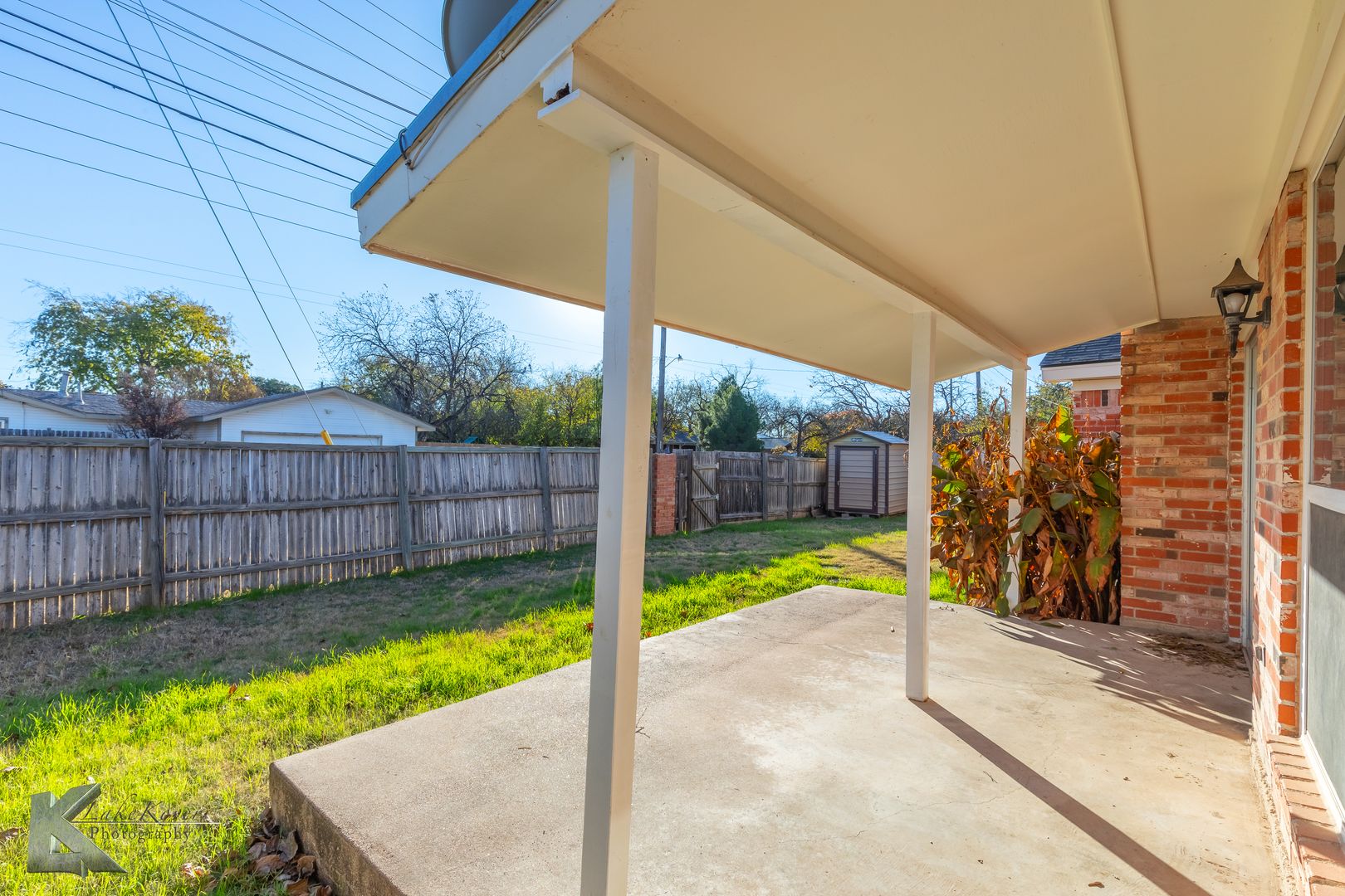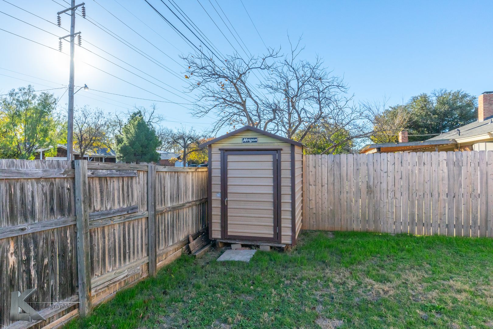 NEW INTERIOR PAINT THROUGHOUT! NEW carpet in bedrooms! Charming 3 bed, 2 bath, 2 car garage home in the middle of Abilene but on a secluded street! Step down living room complete with wet bar and fireplace. Great kitchen space with all kitchen appliances provided, even a washer and dryer! Bedrooms are carpeted; neutral colored walls throughout; both bathrooms have been updated with tile tub surrounds and updated fixtures. Central heating and air unit less than 5 years old. Small back yard with small storage building perfect for your yard equipment! Tenant to pay all utility bills; Rent always due on the 1st. All payments must be paid digitally. Easy! No sight unseen leases, you must tour this home IN PERSON before your application is considered.