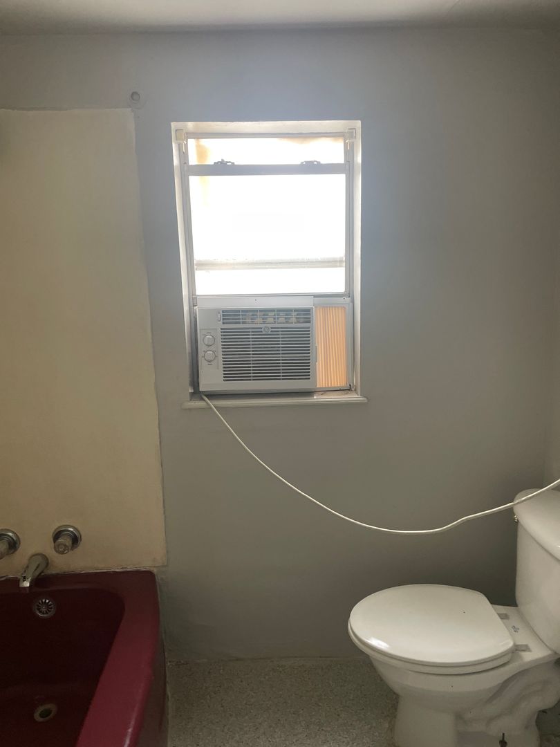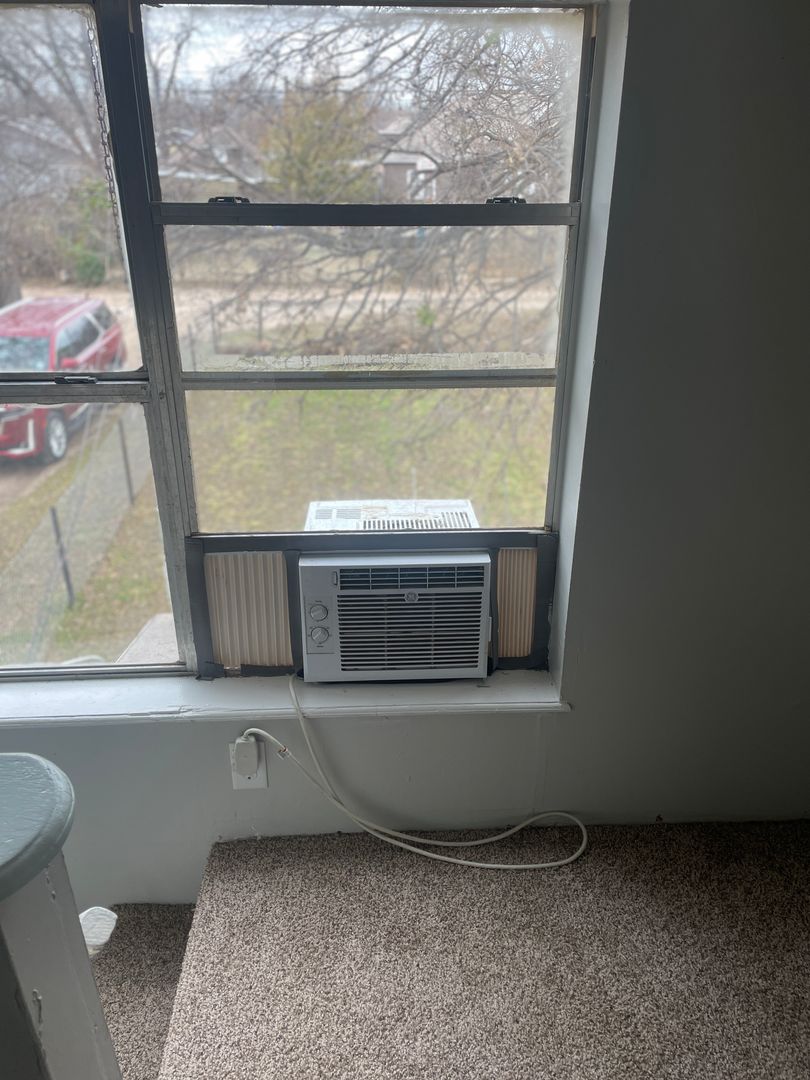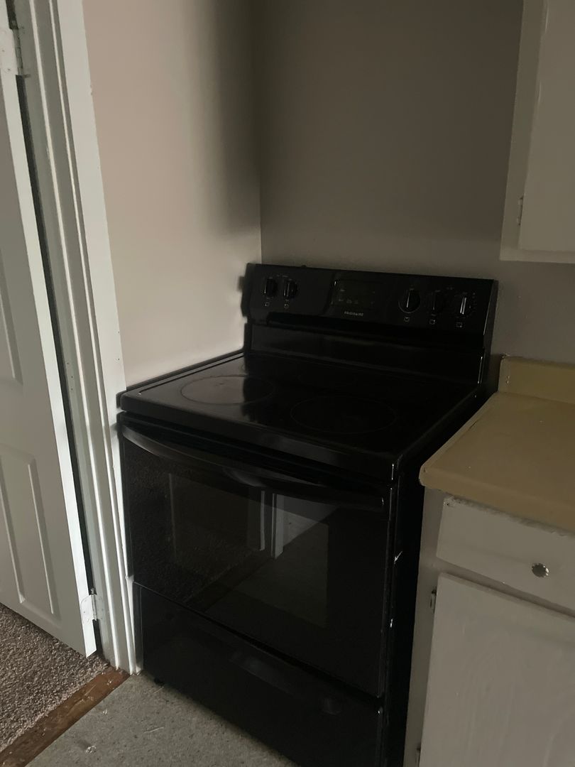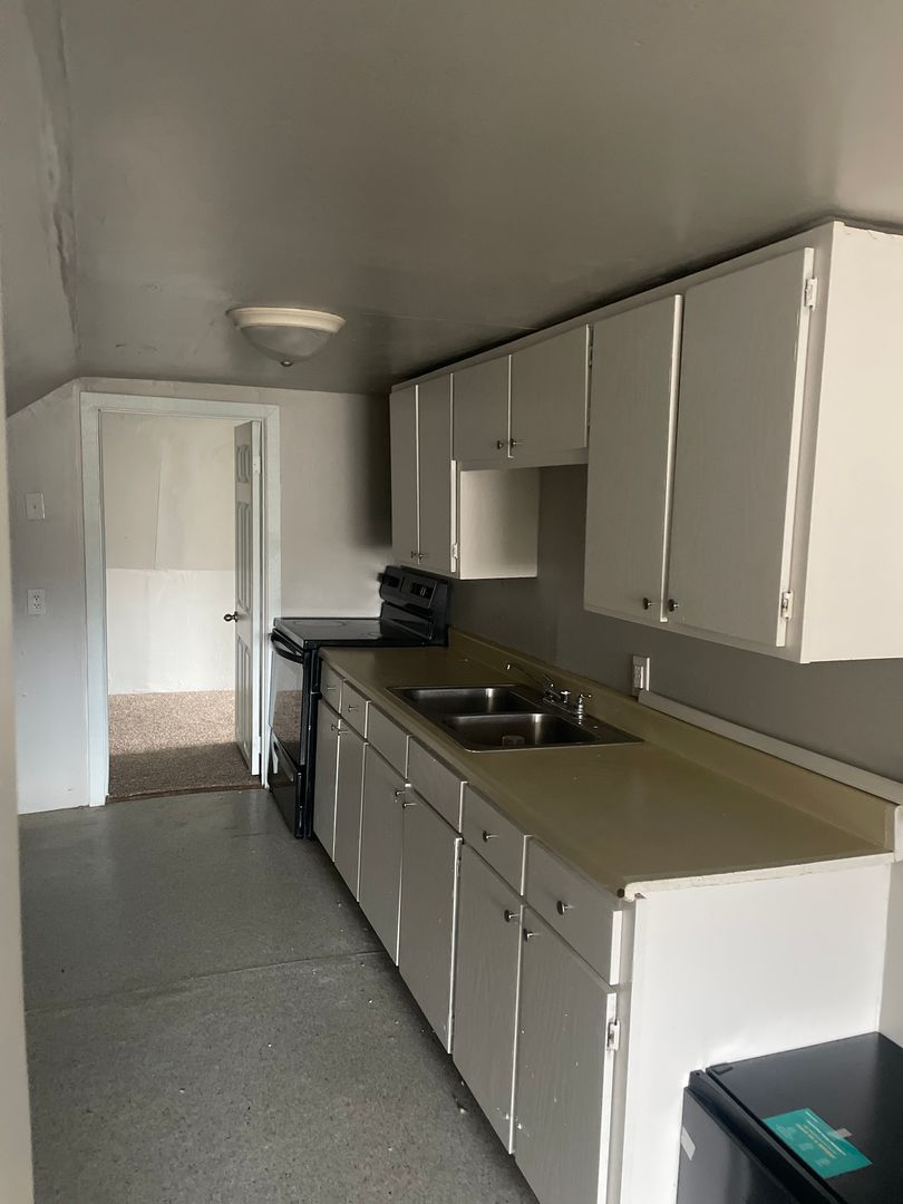 UPSTAIRS UNIT!   ONE BEDROOM!  Window units provided for cooling; tenant to provide space heaters.  Full size range provided. CARPET THROUGHOUT!  Full bathroom and large living room.  The bedroom is the width of the entire unit:  long and skinny complete with nice closet.  Small furnishings only.....Grandmother's dining table will NOT fit through the door and up the stairs!