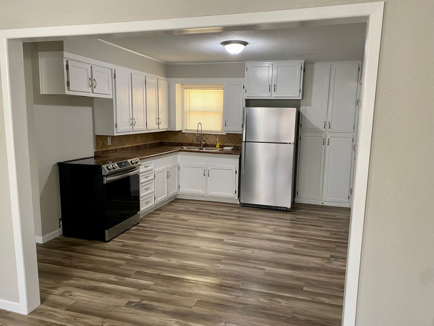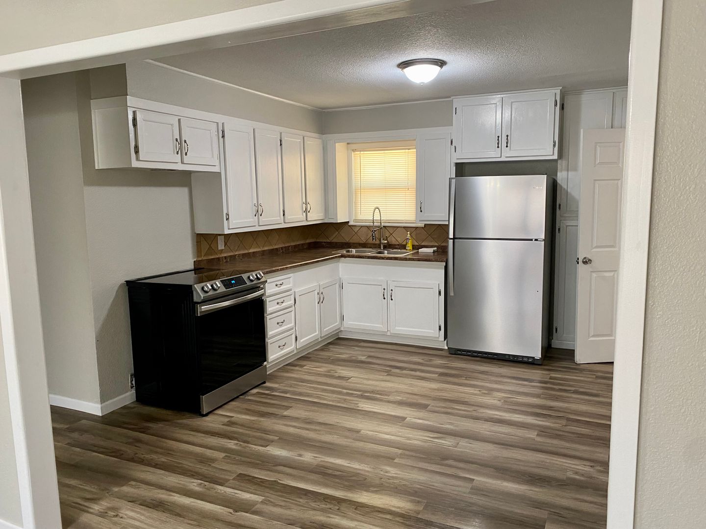 3 Bedroom, 1 bath, 1 car garage beside Mann Middle School! Don't miss this updated home complete with new vinyl flooring, neutral wall paint, stainless kitchen appliances and a washer and dryer set, too! Call the office to set up a showing today!