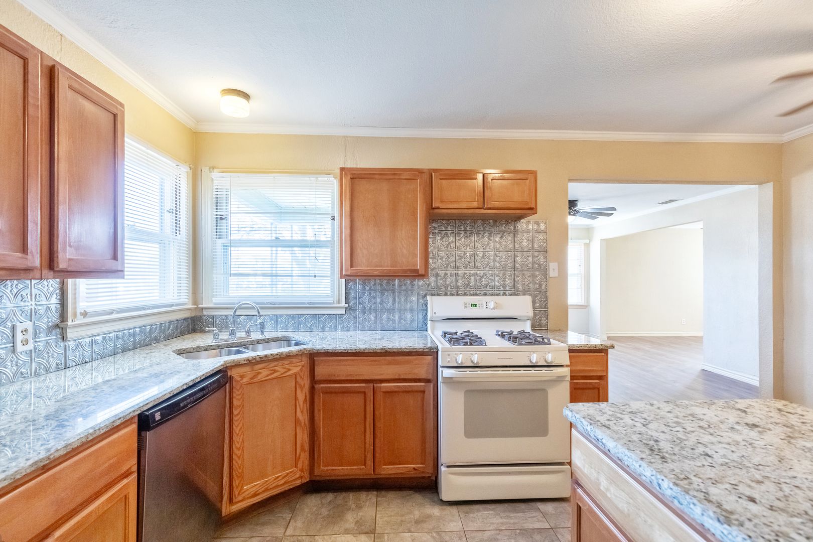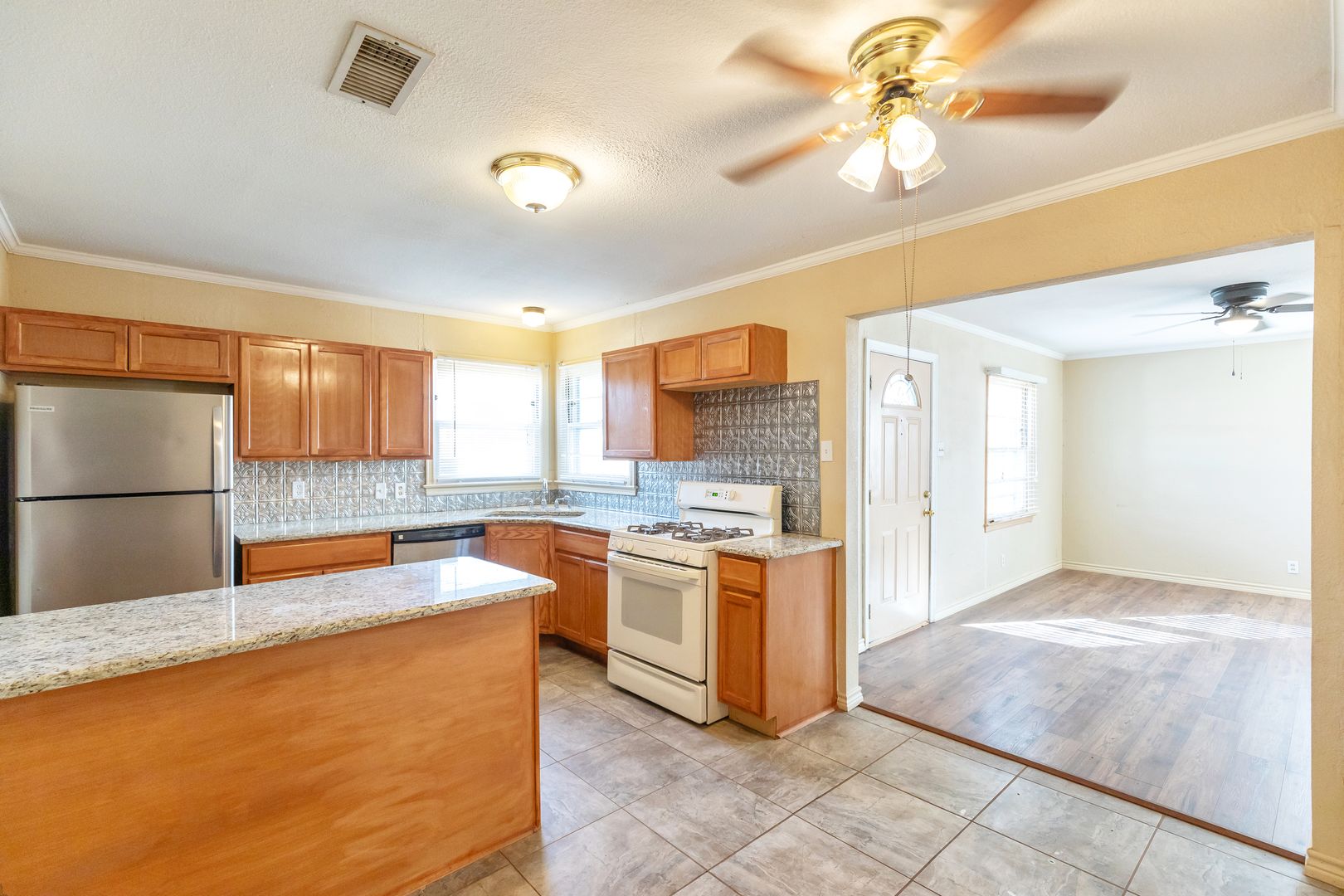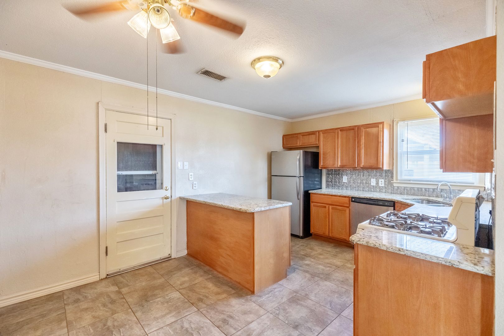 3 bed 2 bath bought just for you! 3 bedrooms, 2 baths, 2 car carport! The garage was converted to storage years ago and is the home of the laundry area, plus ample storage. Cars can only be parked under the carport. A back patio makes for a nice retreat, plus you have 3 sheds and a second yard space separate from the larger back yard. Carpet in 3 bedrooms, laminate flooring in the living and kitchen area. New dishwasher just installed; GAS RANGE provided for you; The Fridge, washer and dryer are provided for you, but NOT GUARANTEED. You can use them 'til they quit working OR we can remove them now for you to add your own. 2 newly painted bedrooms, 4 new ceiling fans added, too. Drive by first then call our office to set up a showing; No sight-unseen approvals, you must tour the home in person. Once you submit your app online and are approved, your deposit is due asap; You'll have up to 2 weeks for rent to be officially due! Don't be tricked by the 3rd party sites that offer a *click here* for approval link. That's nonsense. Call our office to get the scoop and set a time!